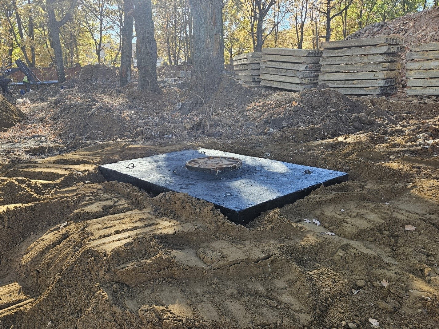 В настоящее время уже проложено 1,2 км водовода, 1,3 км канализационных сетей и 100 м теплосетей. На стройплощадках продолжается разработка траншей, устройство основания под коммуникации, укладка труб, монтаж колодцев и устройство бетонных тепловых камер. Трубопроводы прокладываются открытым способом и методом горизонтально направленного бурения. После завершения строительства пройдут испытания на прочность и герметичность.